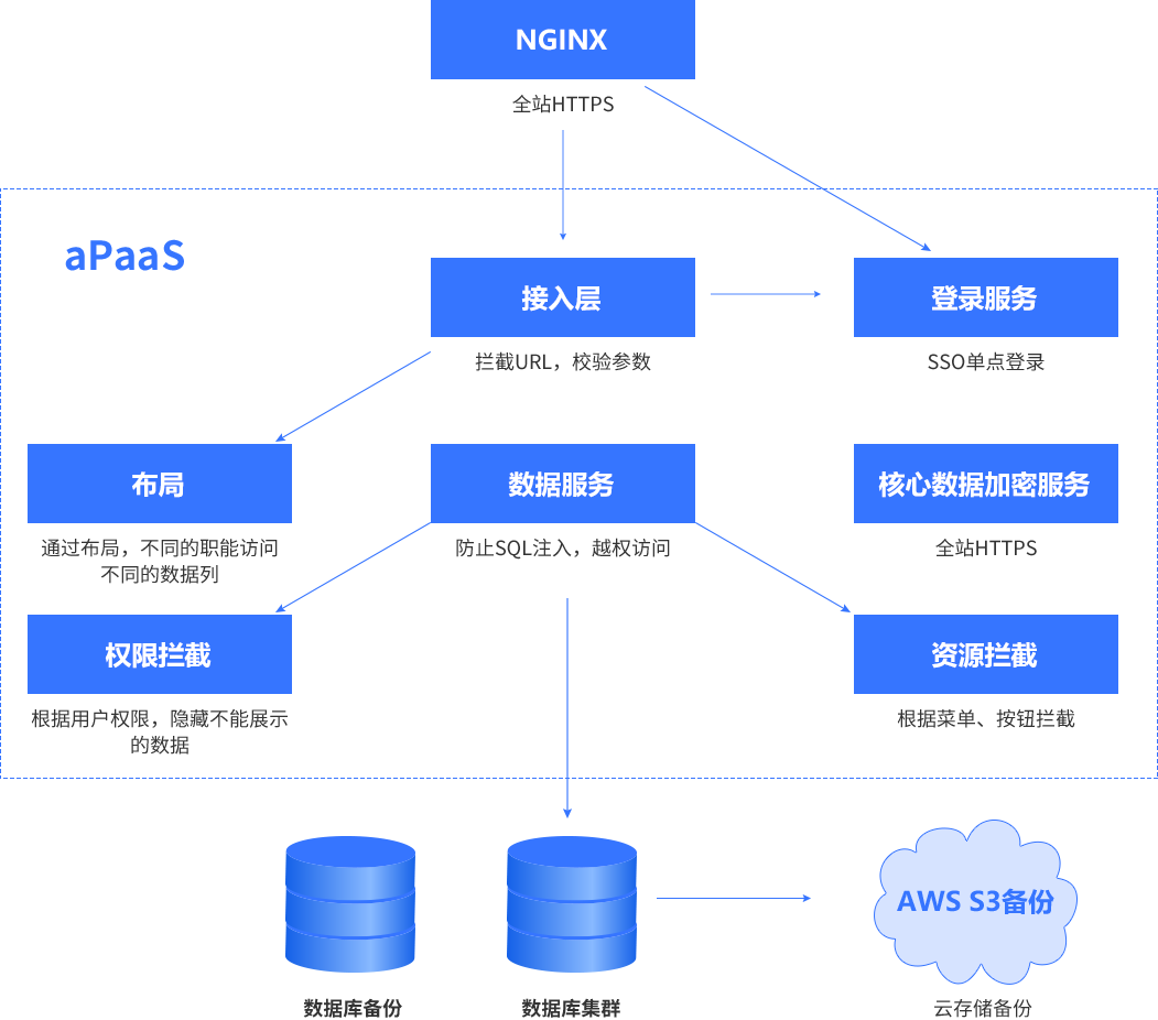 备注::平台与业务分离,,,,开发运维只运维平台,,业务专家生成的元数据(表/字段/运行逻辑)+业务数据全部以碎片的方式存储在DB中,,,技术人员无法解读,,,只有业务专家授权后才能导出元数据+业务数据