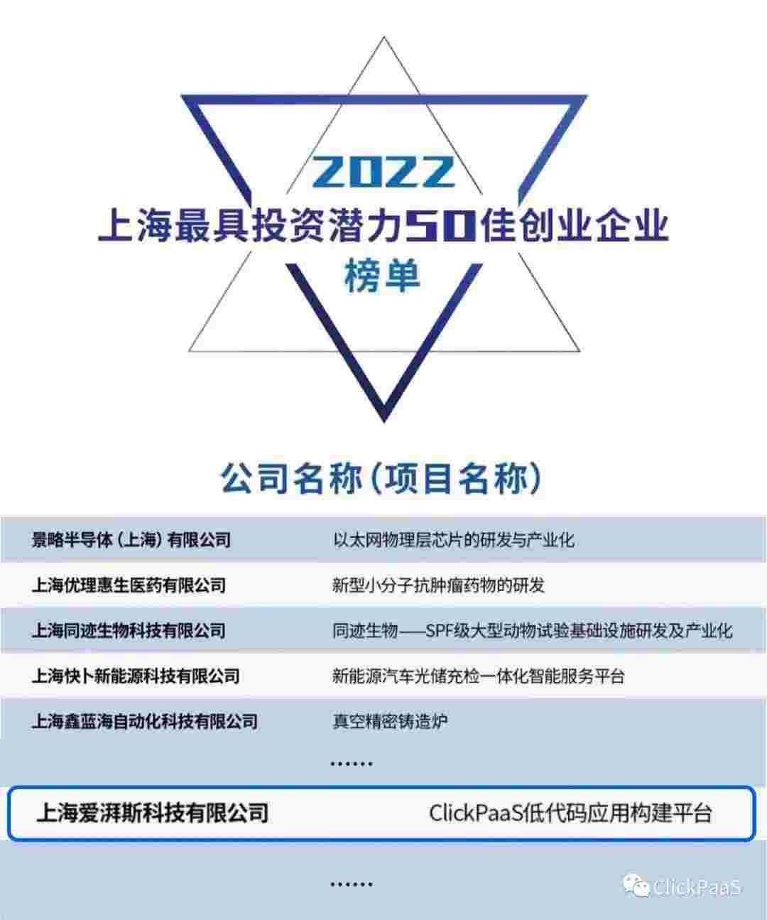 NO钱包 作为国内低代码PaaS平台的领军企业,,,,与120家创企入围角逐。。期间接受了来自德同资本、、、、领中资本等知名投资机构的10位投资人组成专家评委团的背靠背盲选。。。。并最终入围“2022上海最具投资潜力50佳创业企业”榜单,,,,被列入“上海市重点培育创业企业库”。。。。
